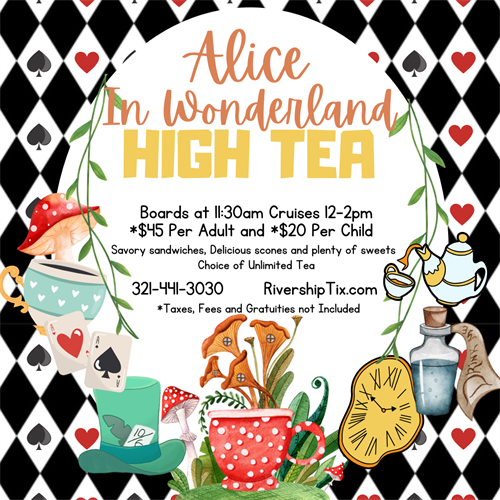 Step into the whimsical world of Alice in Wonderland aboard the Barbara-Lee for a delightful High Tea Cruise! Enjoy a 2-hour journey along the scenic St. Johns River, taking you back to a time when things were peaceful and pretty.