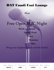 Bring your talents in spoken word, poetry, singing, skits or an instrument.