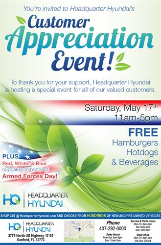 Headquarter Hyundai's HUGE Customer Appreciation EVENT!