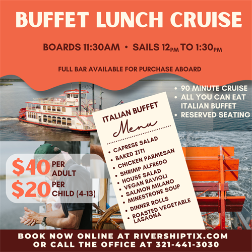 Tickets are available online at RivershipTix.com or by calling our office at 321-441-3030