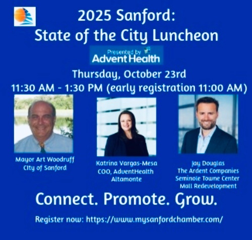 Join the Sanford Chamber of Commerce for one of our most anticipated annual events, the Sanford: State of the City Luncheon. This year’s program will feature Mayor Art Woodruff along with leaders from the City of Sanford’s departments, who will share highlights of the city’s achievements in 2025, challenges faced, and the exciting vision for 2026.